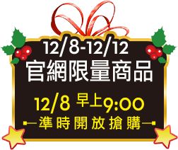 - 限時限量商品恕不與其他優惠併用,不得直接折抵現金或轉售、轉讓或累積使用。