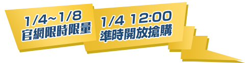 - 限時限量商品恕不與其他優惠併用,不得直接折抵現金或轉售、轉讓或累積使用。